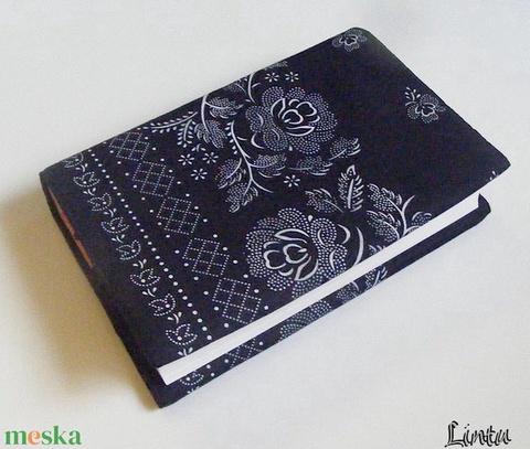 Könyvborító állítható szélességgel, kékfestő jellegű anyagból
