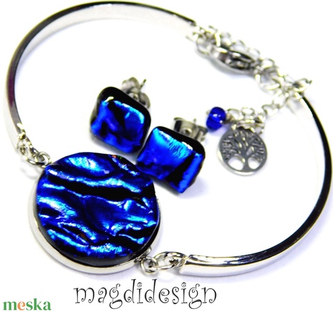 Királykék üvegékszer szett karkötő, stiftes fülbevaló