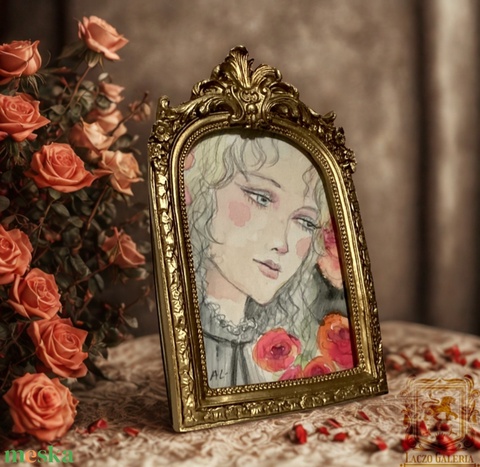 Időtlen báj - Női portré - Eredeti Akvarell, Szép keretben - Laczó Ágnes