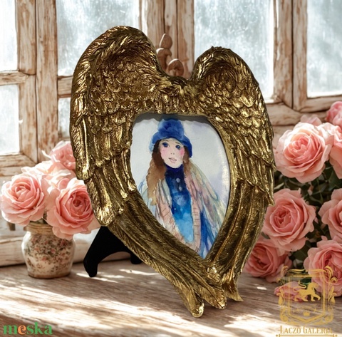 Angyal kalapban - Akril festméy, Falikép, Szép, Aranykeretben - Laczó Ágnes