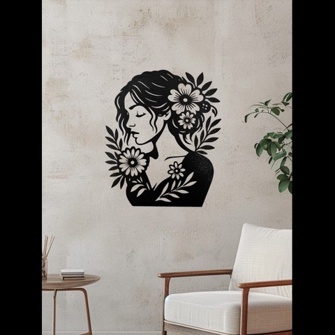 3D Nyomtatott Fali Dekoráció - Virágos Hölgy