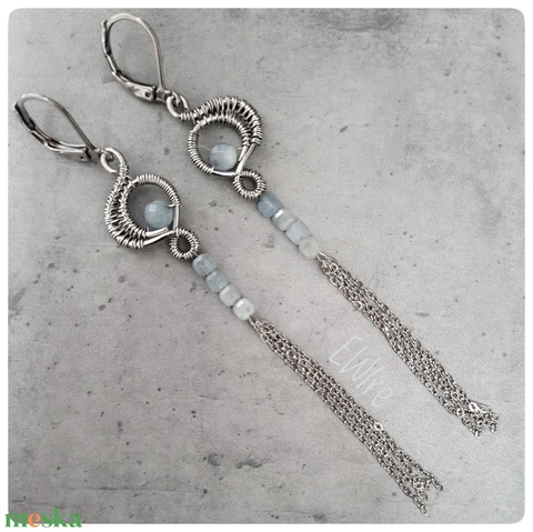 Akvamarin gyöngyös hosszú fantázia fülbevaló, drótékszer