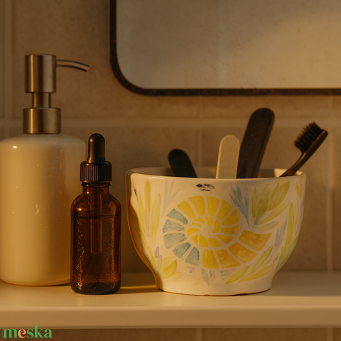 Festett ammonitesz mintával díszített kerámia tál