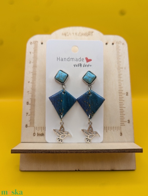 Kézműves fülbevaló polimer gyurmából (polymer clay) - kolibri - 078