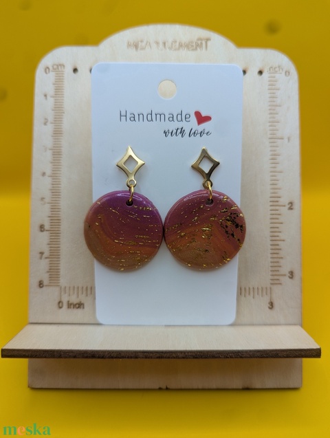 Kézműves fülbevaló polimer gyurmából (polymer clay) - nagy, kerek - 083