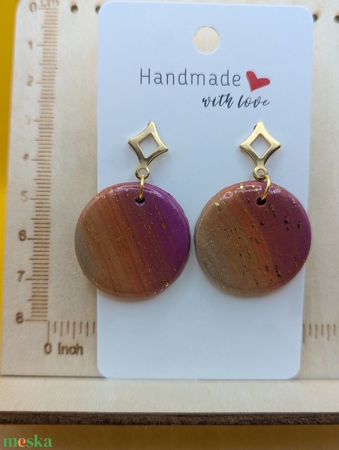Kézműves fülbevaló polimer gyurmából (polymer clay) - nagy, kerek - 084