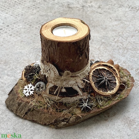 Hintaló - rusztikus asztaldísz fa mécsestartóval
