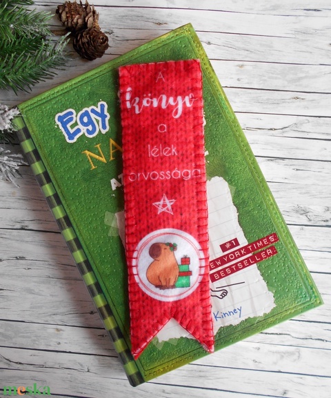 Capybara karácsonyi könyvjelző piros kötött alappal 5.