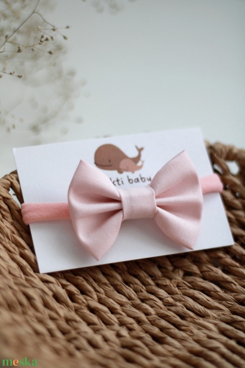 Púder rózsaszín midi masnis elasztikus fejpánt , baba fejpánt, hajpánt