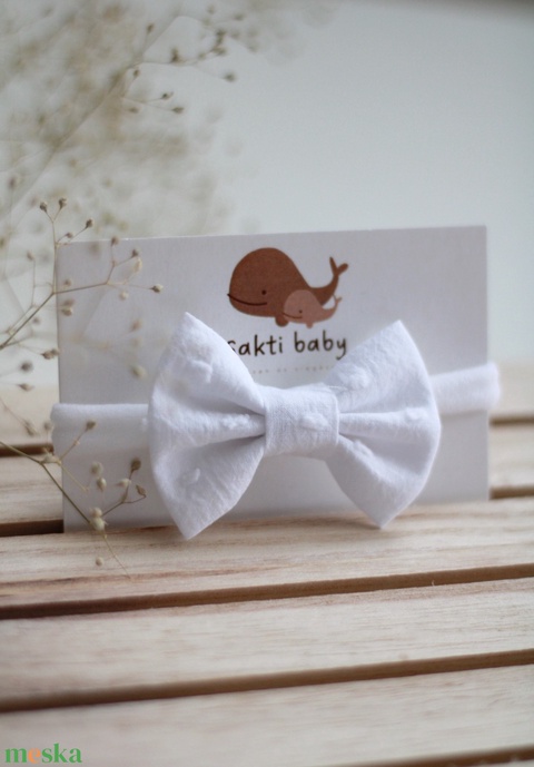 Fehér dotty midi masnis elasztikus fejpánt , baba fejpánt, hajpánt