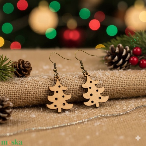 Lyukacsos Karácsonyfa Fülbevaló Fából