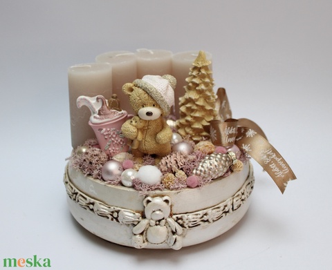 - Anyaga: kerámia figura, karacsonyi gömb, száraz termések, dekorláda