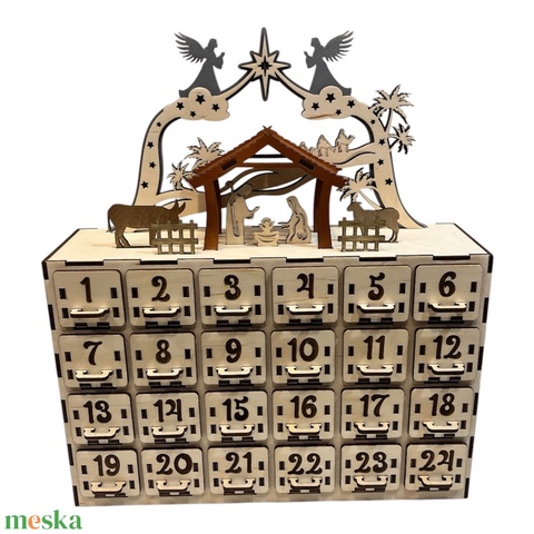 Angyalos Fa Adventi Kalendárium Betlehemes Díszítéssel – 24 Fiókos
