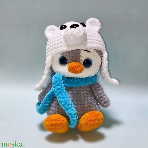 Horgolt pingvin jegesmedve sapkában