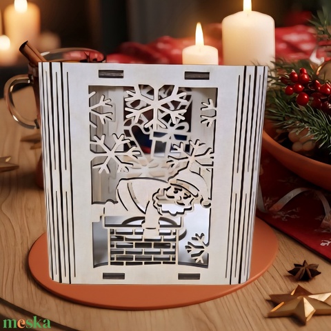 ✨ Karácsonyi Lézergravírozott Fa Lámpás / Dekoráció ✨