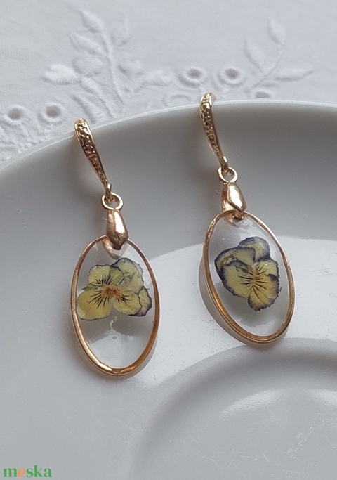 Préselt árvácska gyanta ékszer. Virágos csungő fülbevaló.