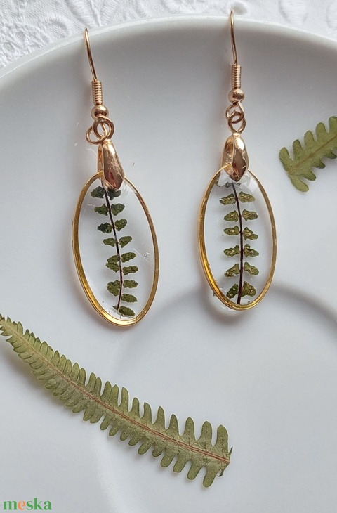Páfránylevél gyanta ékszer. Természetes csüngő fülbevaló.