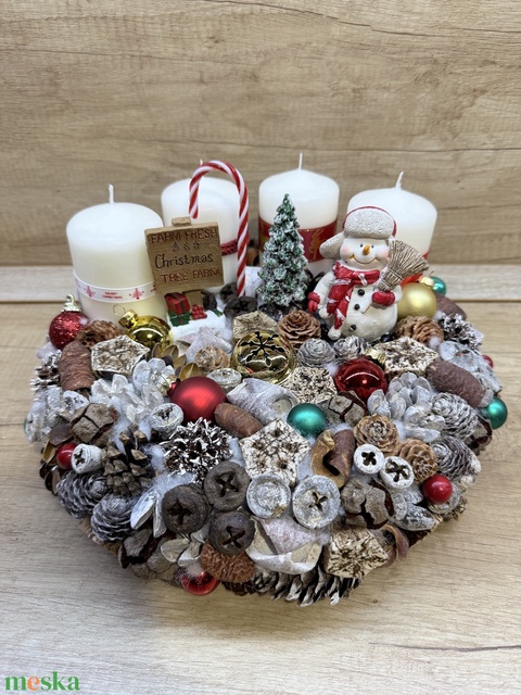 - Anyaga: gyertya, koszorú, gömbök, termések, kerámiadíszek