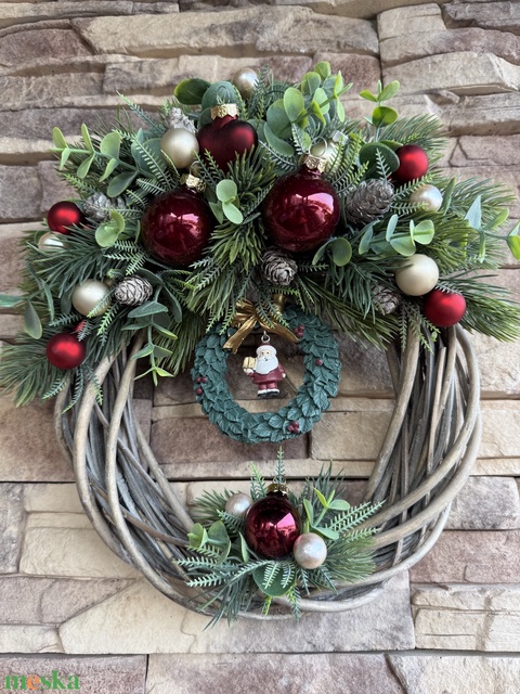 - Anyaga: gömbök, fenyőágak, kerámiadísz