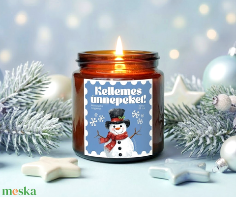 Karácsonyi Illatgyertya -120g, Kellemes Ünnepeket illatgyertya, karácsonyi apró ajándék, hóember