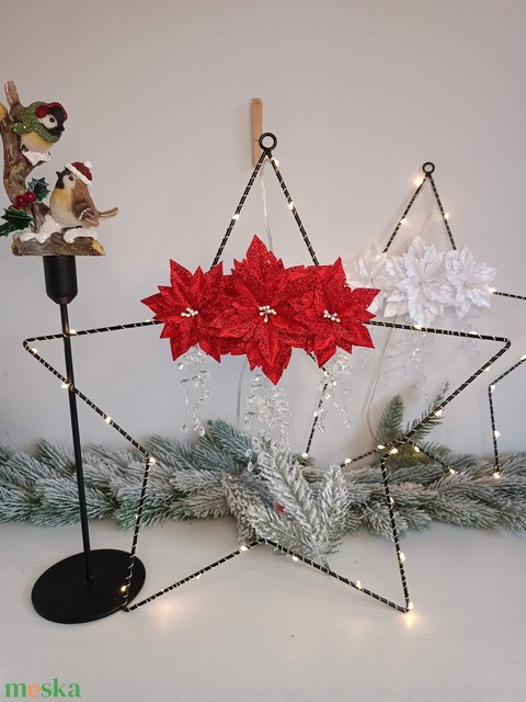 Mikulásvirágos LED-es csillagdísz ablakba, ajtóra