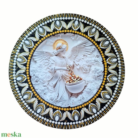 Bőség angyala pontozott mandala fém betéttel – 30 cm