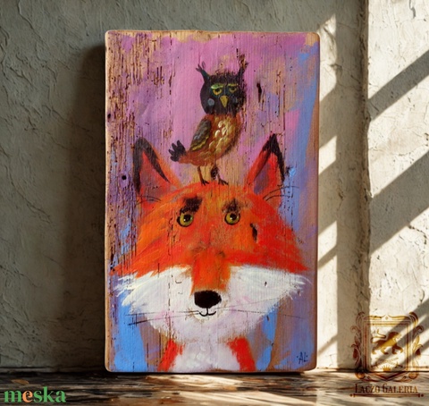 Jóban- rosszban - Rusztikus Fatábla, Ajándék ötlet - Egyedi Falidísz, Bagoly, Róka, Gyerekszoba