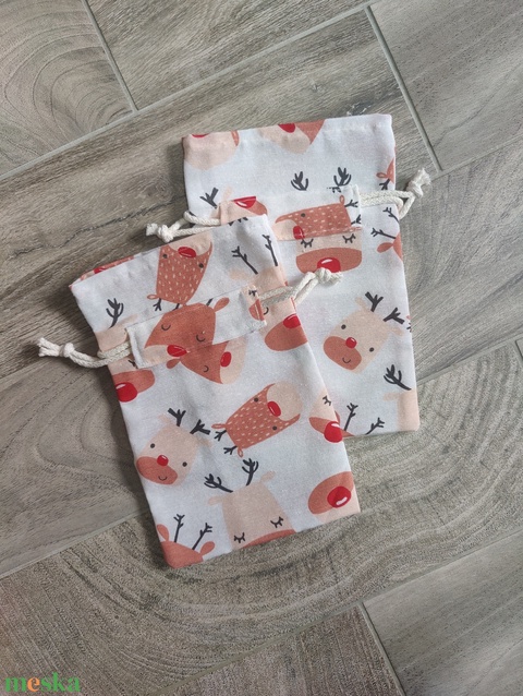Karácsonyi, rénszarvas mintás ajándék zsák