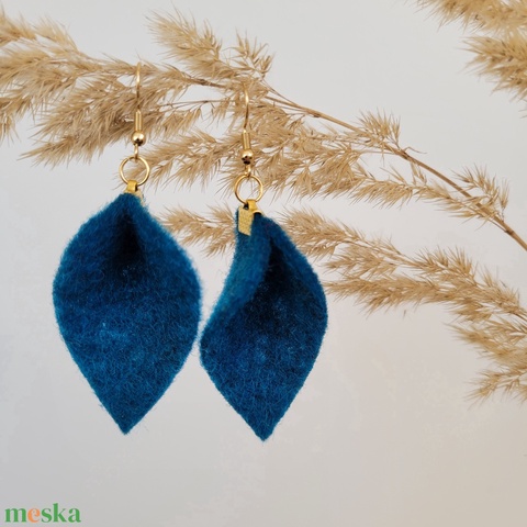 Tündérlevél fülbevaló- petrolkék/sötéttürkiz