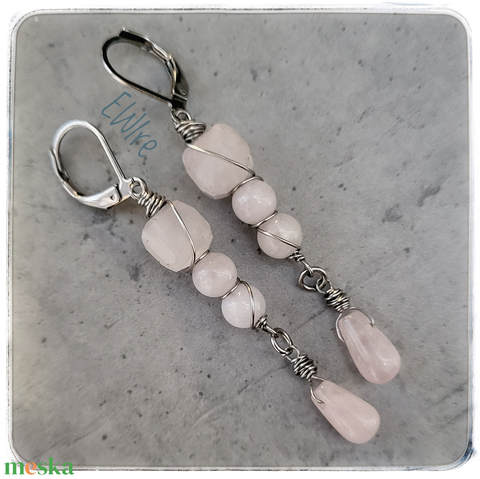 Rózsakvarc fülbevaló orvosi fém