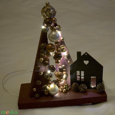 - Anyaga: fa, műanyag díszek, termés, led fény