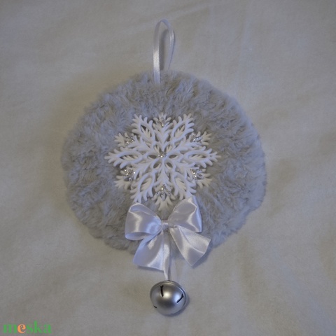 - Anyaga: műszőrme fonal, faalap, műanyag dísz, szaténszalag, csengettyű