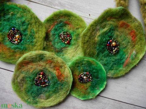 Nemezelt nyaklánc / nyakék / korongos nyaklánc/ zöld nyakék/ textil nyaklánc