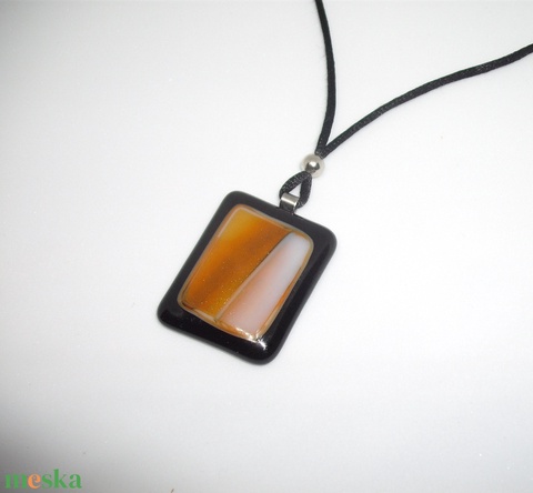 ÜVEGMEDÁL, fekete-barnás-narancsos