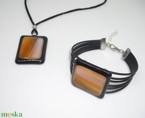 ÜVEG MEDÁL KARKÖTŐVEL, fekete-barnás-narancsos színű
