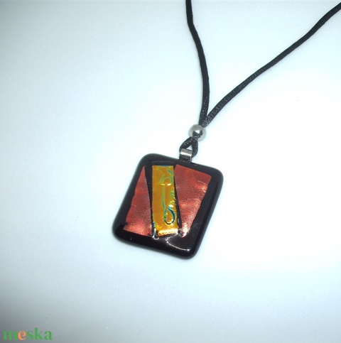 ÜVEGÉKSZER, fekete-piros-arany színű medál