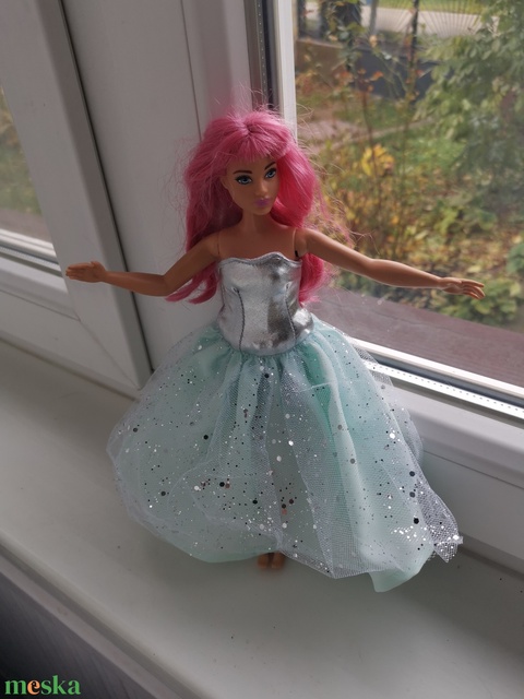 Barbie almazöld színű alkalmi selyem és tüll babaruha