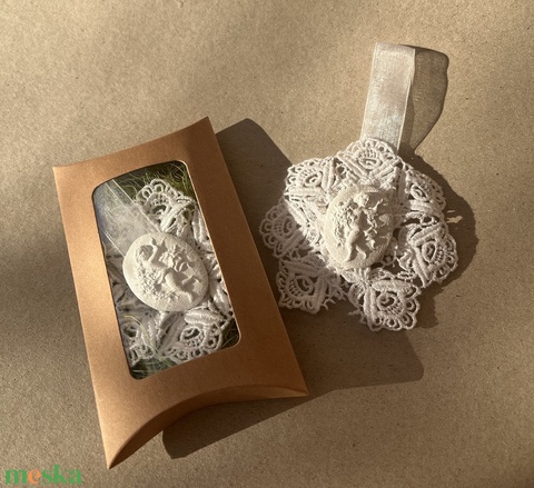 - Anyaga: csipke, gyurma, szatén szalag