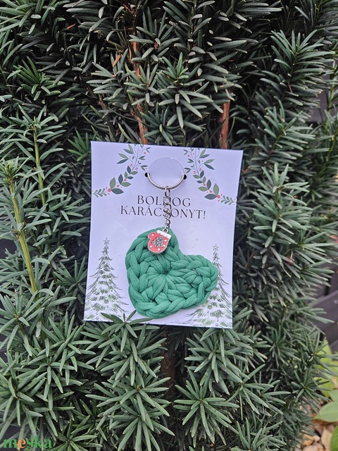 Horgolt szív kulcstartó ajándék - zöld