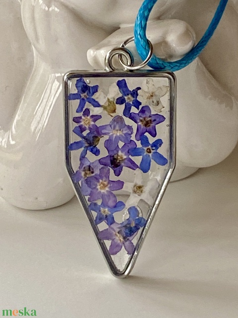 Nefelejcsek-fém keretes epoxi gyanta medál