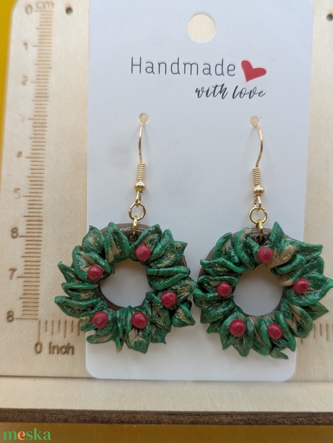 Kézműves fülbevaló polimer gyurmából (polymer clay), karácsonyi ajándék, adventi koszorú - 116