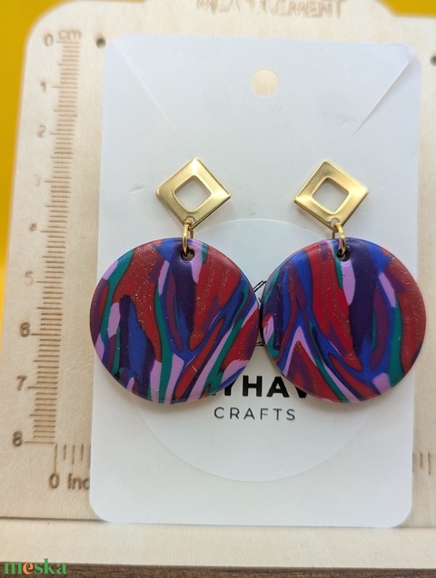 Kézműves fülbevaló polimer gyurmából (polymer clay), karácsonyi ajándék, nagy, kerek - 123