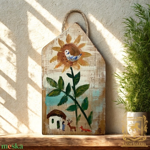 Napvirág - Rusztikus Festett Fa, Dekoráció - Falra akasztható - Ajándék ötlet, Őz, Szarvas, Róka