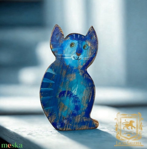 Kék cirmos - Rusztikus Fatábla, Vicces Ajándék ötlet - Falikép, Egyedi Falidísz, Macska, Cica
