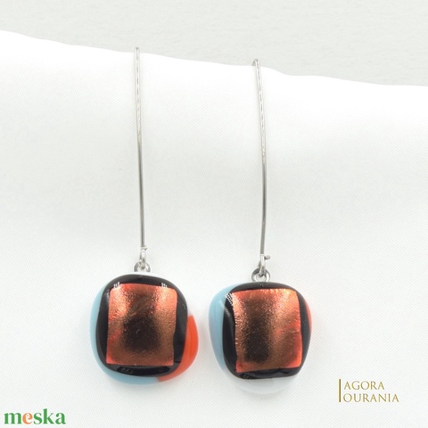 - Anyaga: színes üvegek, barna réz irizáló dichroic ékszerüveg, nemes acél fülbevaló akasztó