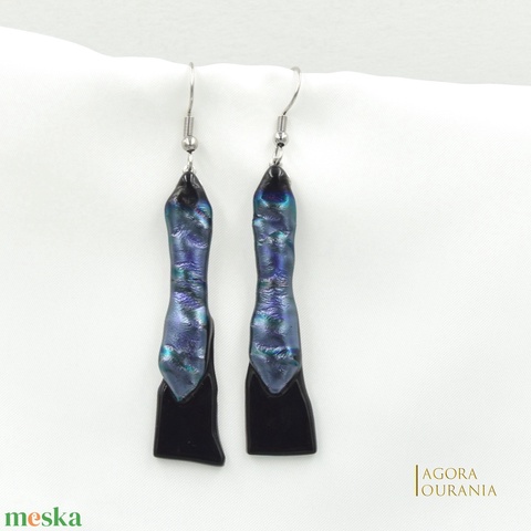 - Anyaga: szürkés lilás irizáló dichroic ékszerüveg, fekete üveg, nemes acél fülbevaló akasztó
