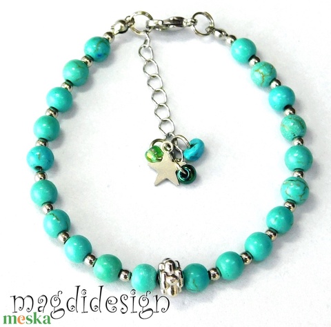 - Anyaga: nikkelmentes szerelék, gyöngy, nemesacél, türkiz