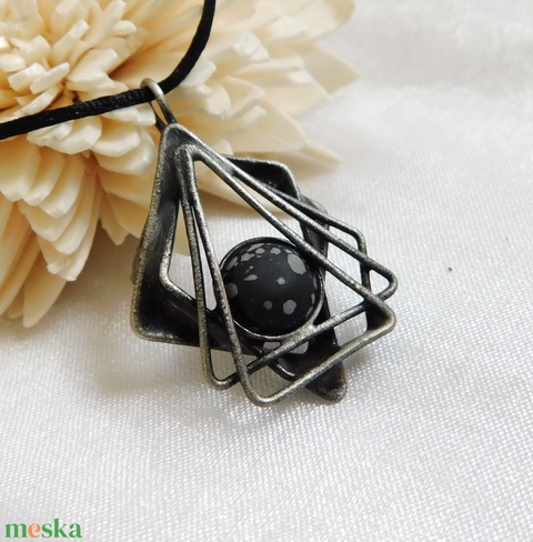 A medál Tiffany technikával készült hópehely obszidián, réz és ólommentes, ezüsttartalmú ón felhasználásával. A díszítés szintén saját készítésű, nem tartalmaz gyári elemeket. A fémrészt óezüstre patináztam és lelakkoztam, hogy sokáig szép maradjon.