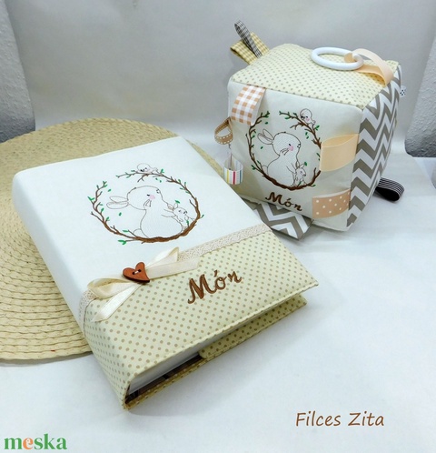 Nyuszis babalátogató ajándékcsomag - babaköszöntő ajándék névhímzéssel
