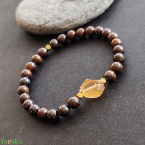 - Anyaga: gumiszál, hematit, boulder opál, mézkalcit